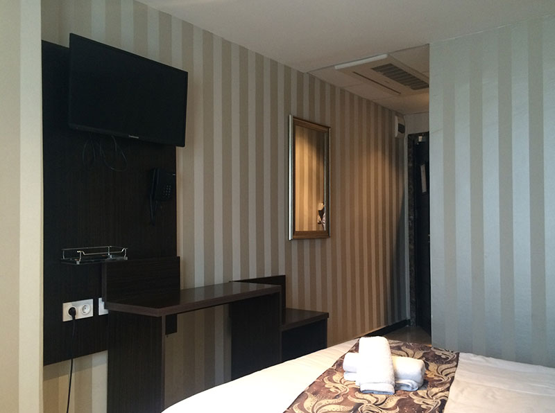 La chambre est équipée d'une armoire, d'une table de travail, d'un téléviseur à écran plat câblé, du chauffage et d'articles de toilette.